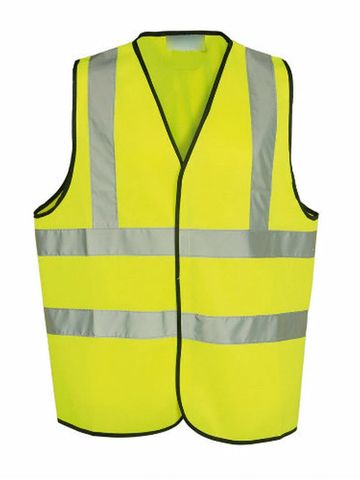 Polyester knit Hi Vis vest 120 gsm with reflective tape with 5cm reflective tape and velcro fastening.
